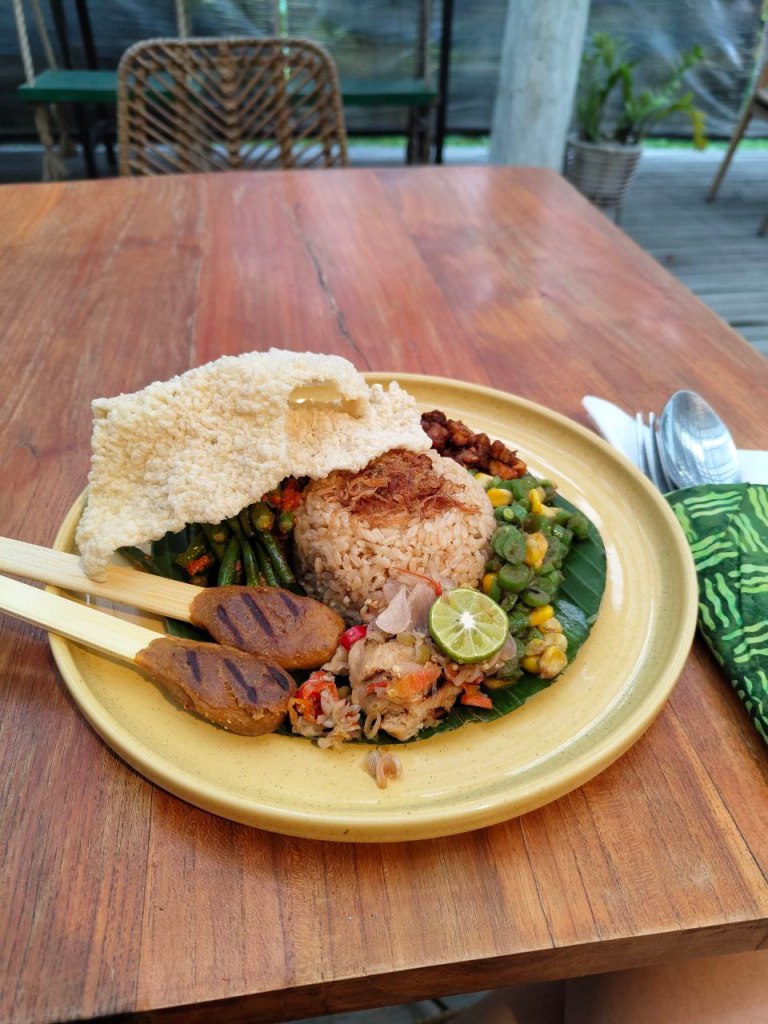 Samassa tilassa oli myös ihana kahvila, josta otin herkullisen vadelmajuoman. Paikka oli todella iso ja tyylikäs. Päädyin ostamaan kaksi perus t-paitaa ja rannekorun, jotka yhteensä maksoivat n. 17€. Ei siis kovin halpaa Balin tai kirppareiden hintatasolle, mutta oikein kiva paikka.