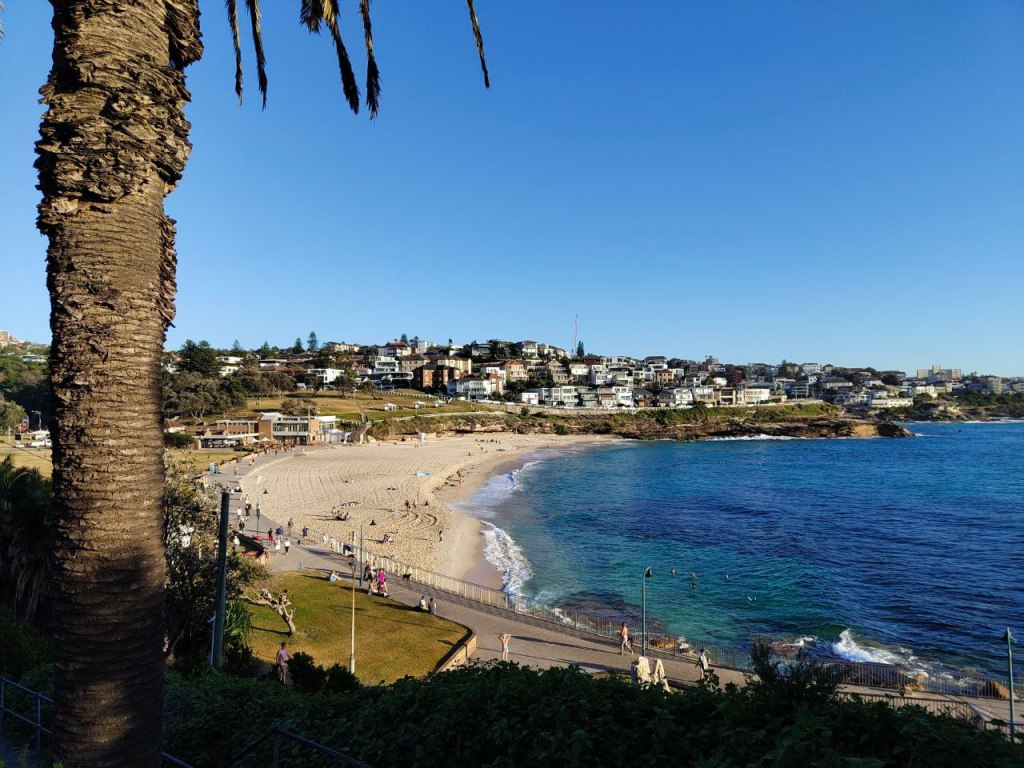 Sunnuntai lähti käyntiin paikallisten tapaan aamuvirkkuna kun heräsin kello 6 enkä saanut enää unta. Lähdin sitten testaamaan suositun Coogee-Bondi -kävelyreitin, joka on noin 5km. Oli oikein kiva kävely rantoja pitkin, eikä tähän aikaan ollut vielä liian kuumakaan. Bondi oli vähän pettymys, iso ja suosittu se on mutta ei mitenkään ihmeellisen näköinen.