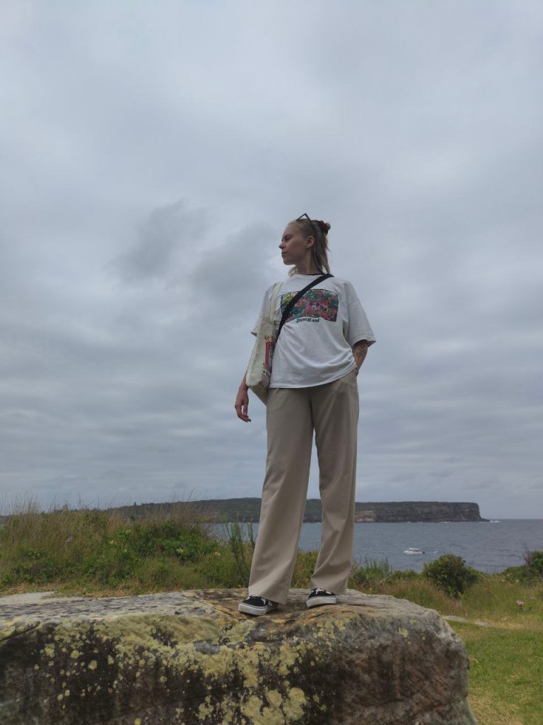Sitten lähdimme lautalla tutkimaan läheistä Watson’s bayta. Lautat on tosi kiva tapa kulkea täällä, niihin pääsee samaan tyyliin korttia näyttämällä kuin muihinkin julkisiin eikä maksa paljoa. Busseja tosin kehotan välttämään jos mahdollista, ne on aina myöhässä ja täynnä. Aivan ihanaa kun on vihdoin vähän viileämpi päivä, eikä tarvitse pelätä auringonpistosta.